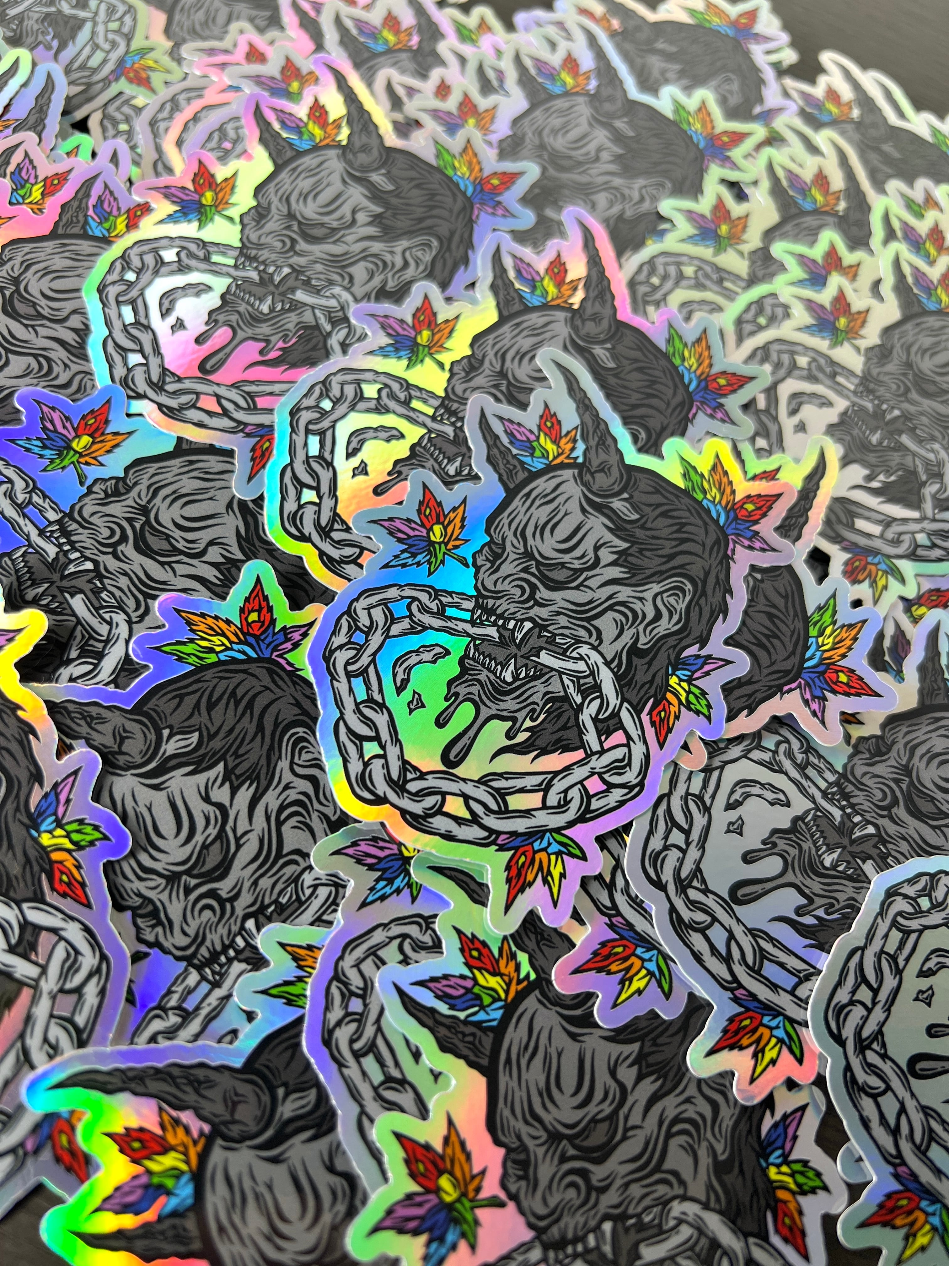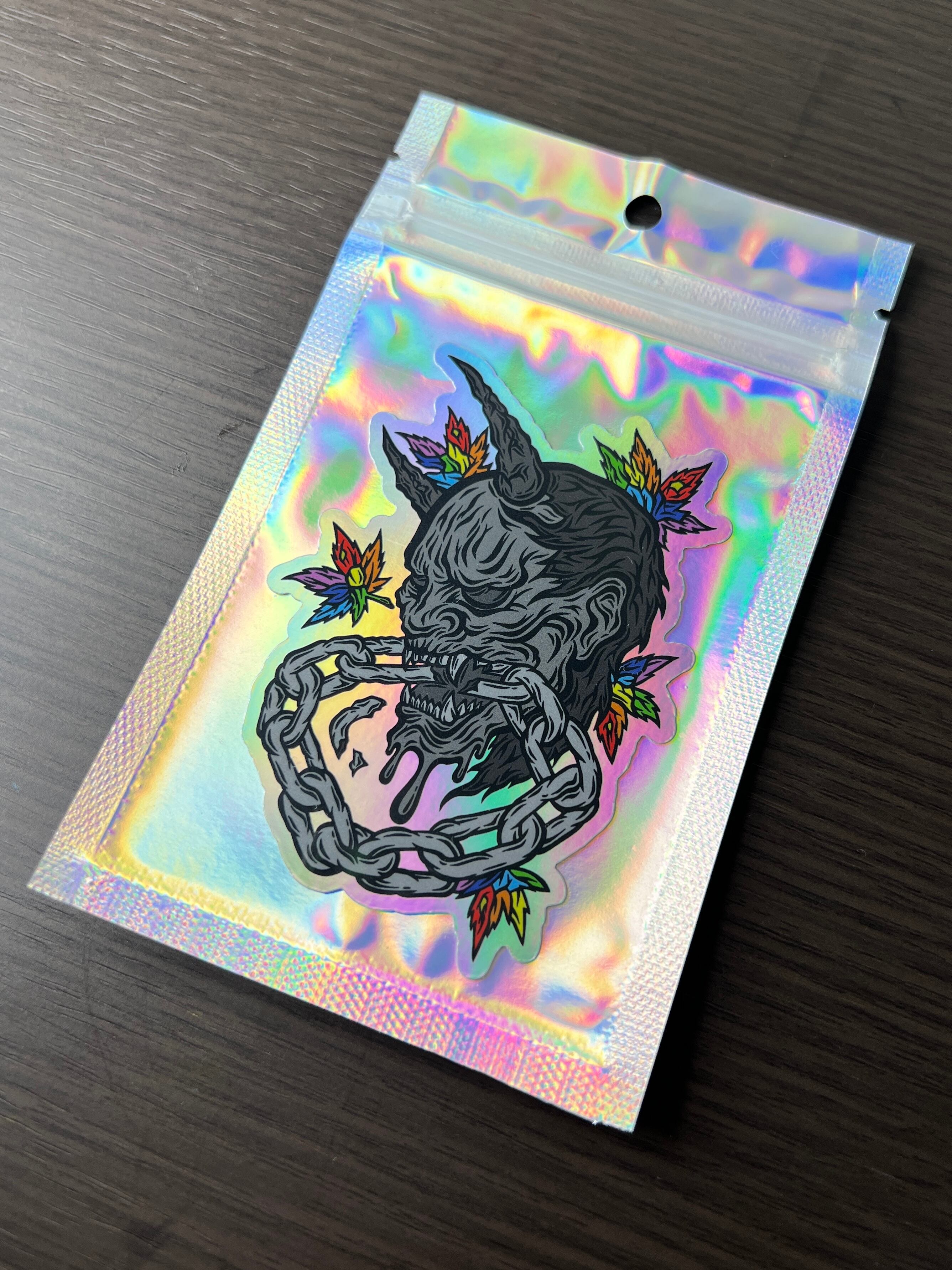 見る角度により、表面が虹色に光って見えるホログラム素材のステッカーです。他のホログラム素材と異なり、柄のないシンプルなホログラム素材です。